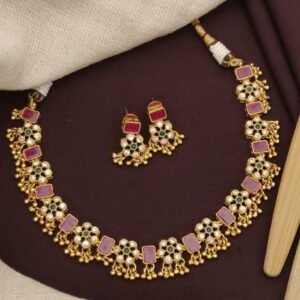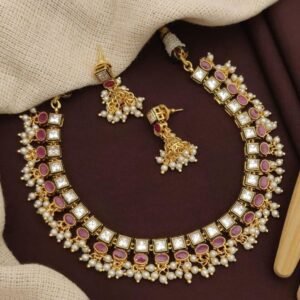 Traditional Kundan Gold-Plated Necklace Set with Earrings