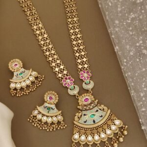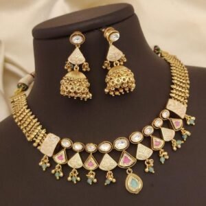 Sarvokshi Diamond Antique Gold Necklace – Real Gold Look