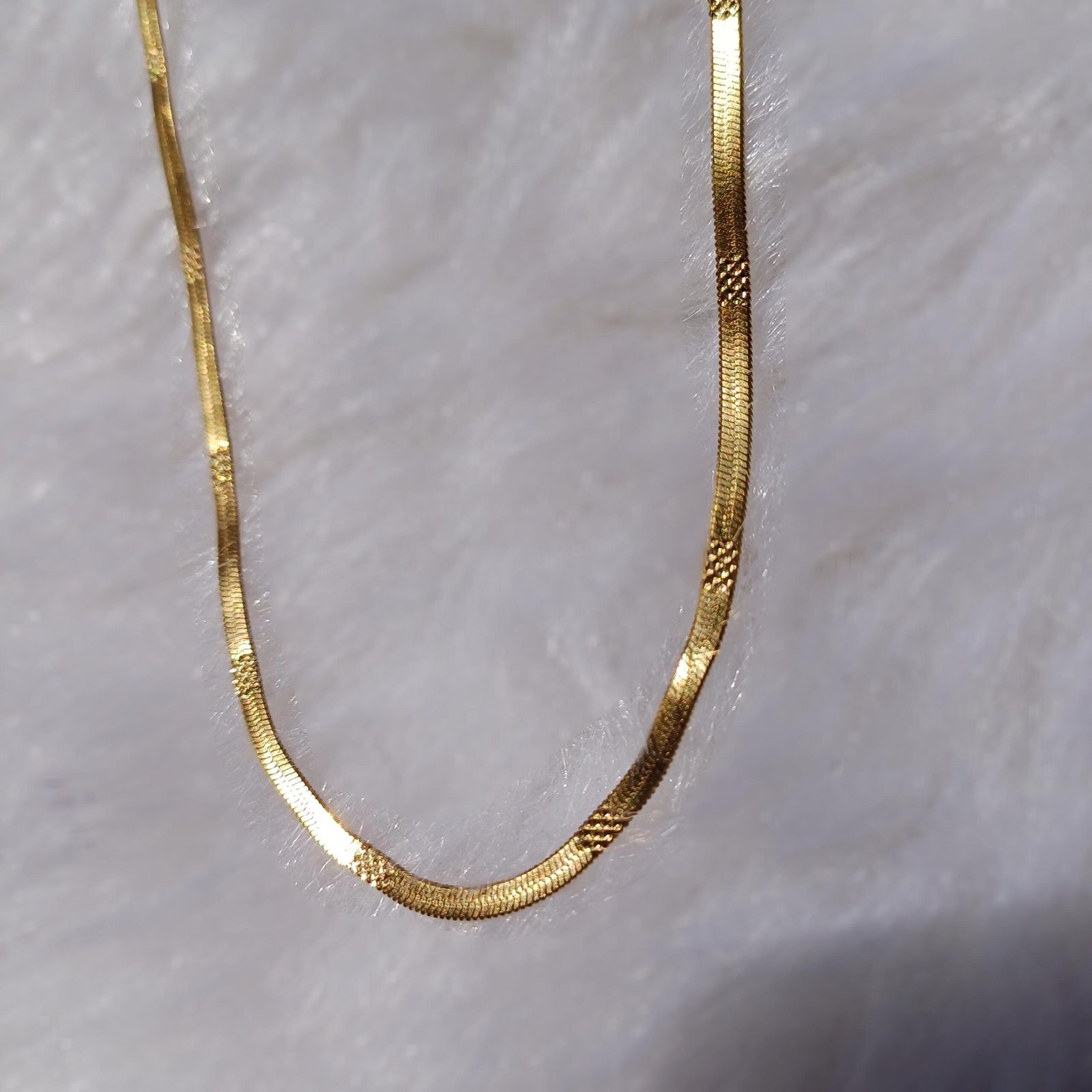Chain Type: Herringbone Chain – flat and sleek with a woven pattern